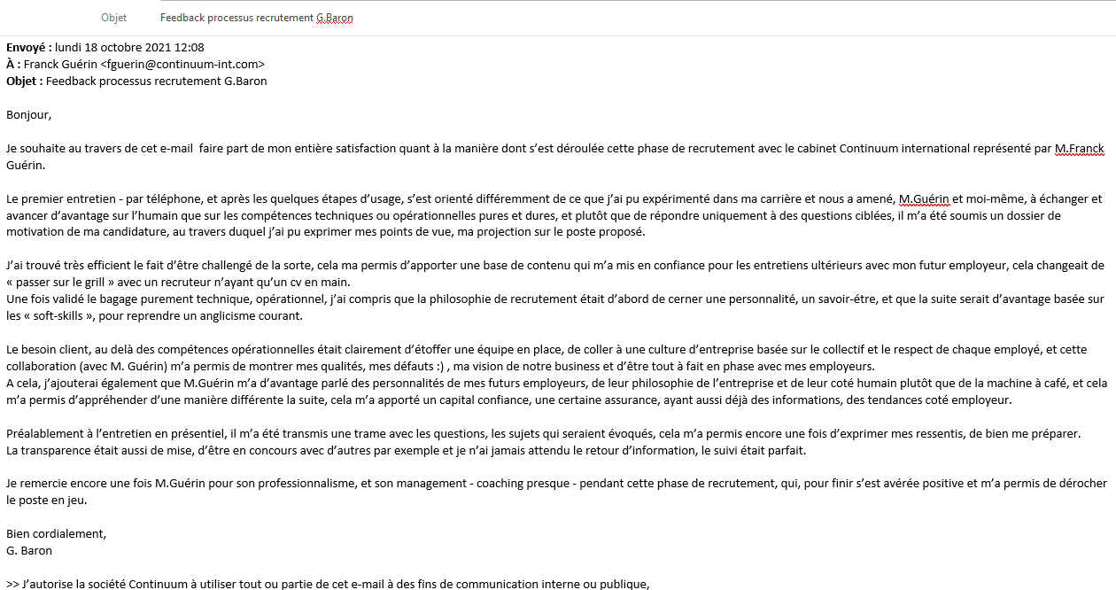 Accueil 5 News 5 Bonheur et satisfaction : un retour d’expérience candidat. Merci G. Baron !